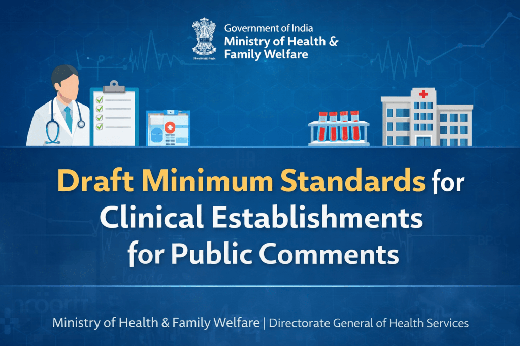 The Government of India has released a draft notification proposing updated minimum standards for clinical establishments under the Clinical Establishments (Registration and Regulation) Act, 2010. The draft aims to standardize infrastructure, staffing, equipment, and operational practices across outpatient healthcare facilities.
