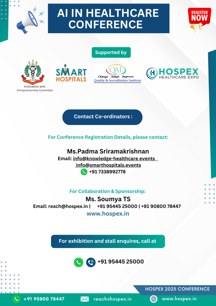 The core focus of HOSPEX Healthcare Expo 2025 (Fourth Edition) is Medical Knowledge dissemination thereby hosts multitude of conferences focused on the futuristic trends in the medical industry. These conferences provide attendees with the opportunity to learn about new products and technologies, network with other professionals in the field, and stay up-to-date on the recent and futuristic developments in the industry (https://hospex.in/)