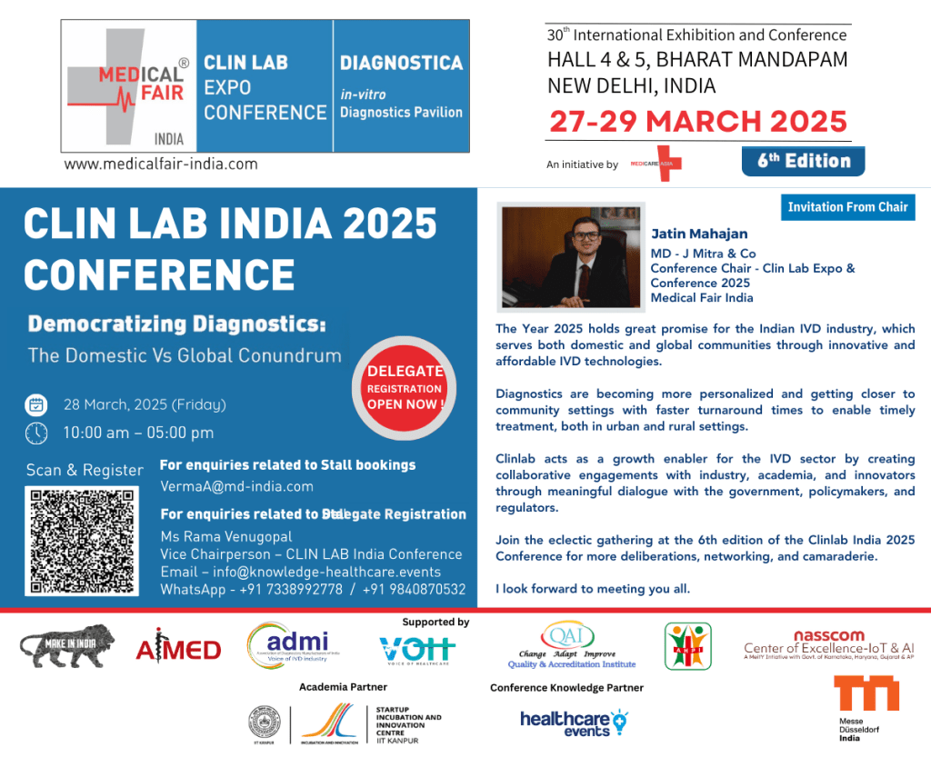 The “CLINLAB India 2025” conference, with its theme “Democratizing Diagnostics: The Domestic Vs Global Conundrum,” is poised to be a pivotal event for IVD sector stakeholders, biotech companies, and healthcare professionals. Here’s why: